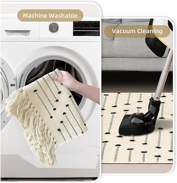 - 🧺Machine Washable: Experience unmatched convenience with a machine washable rug that's easy to maintain. Say farewell to tedious cleaning and welcome a fresh, beautiful home with minimal effort. The low-pile design is easy to clean and can be vacuumed daily to prevent dust from settling into the fibers. Our easy-care boho runner rug can be washed in cold water (below 30℃) on a gentle cycle to avoid shrinkage. Air drying or laying flat to dry is recommended; avoid ironing.