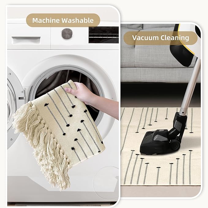 - 🧺Machine Washable: Experience unmatched convenience with a machine washable rug that's easy to maintain. Say farewell to tedious cleaning and welcome a fresh, beautiful home with minimal effort. The low-pile design is easy to clean and can be vacuumed daily to prevent dust from settling into the fibers. Our easy-care boho runner rug can be washed in cold water (below 30℃) on a gentle cycle to avoid shrinkage. Air drying or laying flat to dry is recommended; avoid ironing.