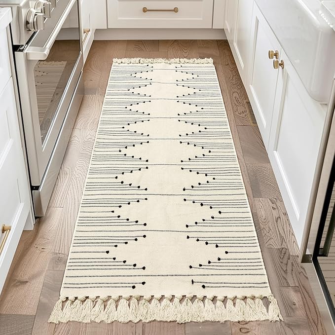 - 🧺Machine Washable: Experience unmatched convenience with a machine washable rug that's easy to maintain. Say farewell to tedious cleaning and welcome a fresh, beautiful home with minimal effort. The low-pile design is easy to clean and can be vacuumed daily to prevent dust from settling into the fibers. Our easy-care boho runner rug can be washed in cold water (below 30℃) on a gentle cycle to avoid shrinkage. Air drying or laying flat to dry is recommended; avoid ironing.