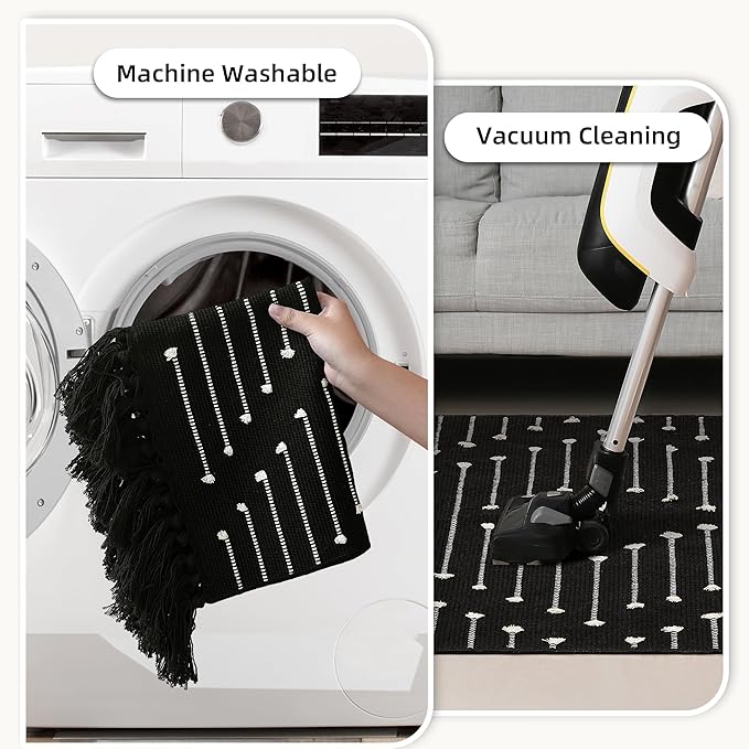 - 🧺Machine Washable: Experience unmatched convenience with a machine washable rug that's easy to maintain. Say farewell to tedious cleaning and welcome a fresh, beautiful home with minimal effort. The low-pile design is easy to clean and can be vacuumed daily to prevent dust from settling into the fibers. Our easy-care boho runner rug can be washed in cold water (below 30℃) on a gentle cycle to avoid shrinkage. Air drying or laying flat to dry is recommended; avoid ironing.
