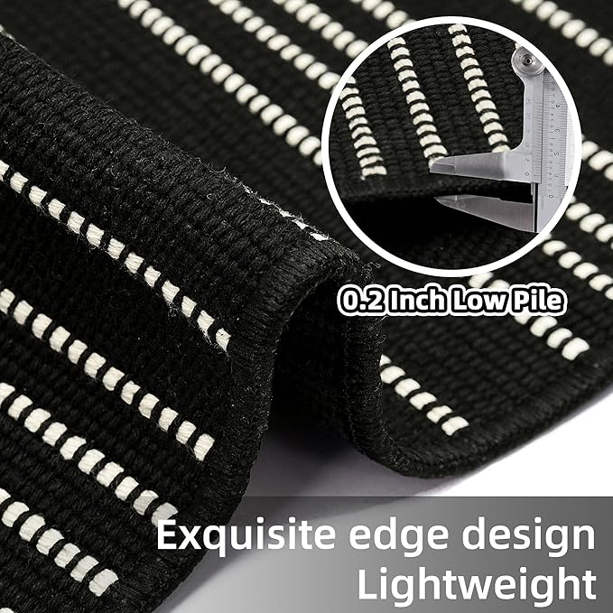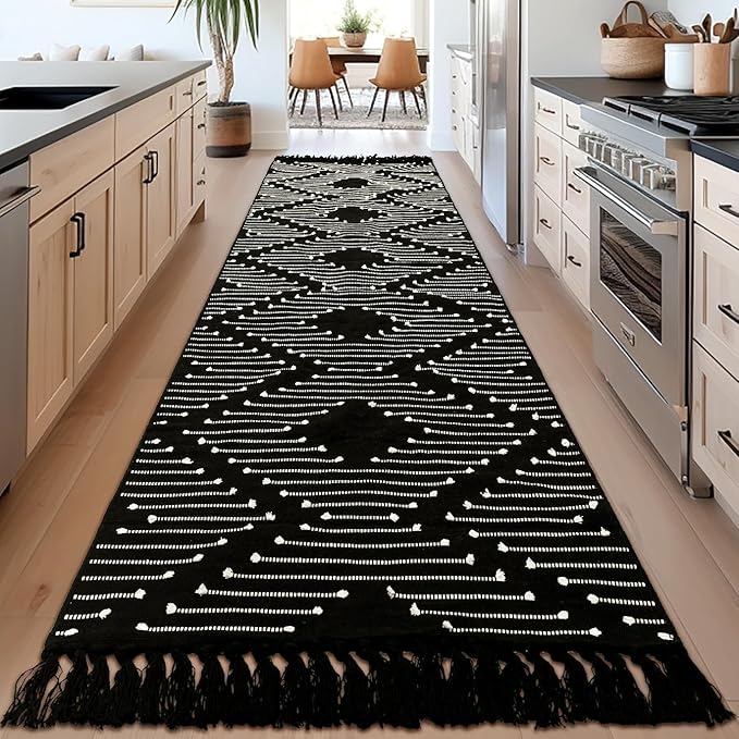 Tritard Boho Runner Rug 2x10 - Washable Long Hallway Rug with Tassels, Thin Woven Farmhouse Kitchen Runner Rugs Cotton Aztec Lightweight Carpet for Entryway, Laundry, Bathroom, Black and White