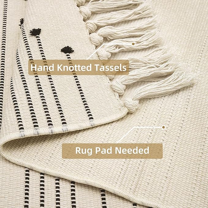 - 🚷Rug Pad Needed: Experience the charm of our woven cotton rugs, crafted from unique material for a luxurious feel. As they lack a non-slip backing, using a rug pad is recommended for added support and anti-slip protection. This ensures both elegance and safety, making your rug a stunning centerpiece in any room.
