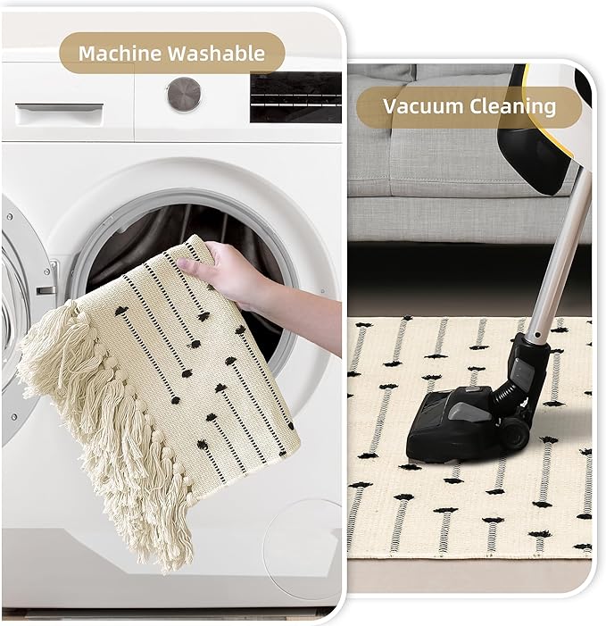 - 🧺Machine Washable: Experience unmatched convenience with a machine washable rug that's easy to maintain. Say farewell to tedious cleaning and welcome a fresh, beautiful home with minimal effort. The low-pile design is easy to clean and can be vacuumed daily to prevent dust from settling into the fibers. Our easy-care boho runner rug can be washed in cold water (below 30℃) on a gentle cycle to avoid shrinkage. Air drying or laying flat to dry is recommended; avoid ironing.