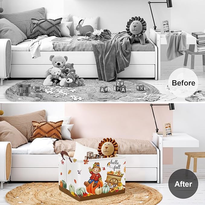 - 🍁 Scarecrow Turkey Fall Bin - Thanksgiving turkey clothes basket, store stuffed animals in kid room, books school supplies in classroom, toys in preschool nursery daycare, dirty clothes in the bedroom