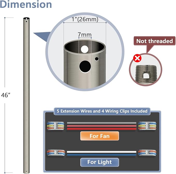 - 【Threadless Design】Please note, the ends of this downrod do not feature threads, hence may not be compatible with certain brands of ceiling fans. Please ensure compatibility with your fan before purchasing.
