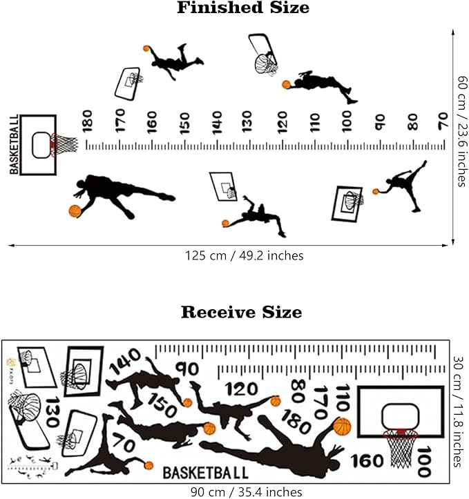 Basketball Player Kids Height Wall Chart | Peel & Stick Nursery Wall Decals for Baby Bedroom, Toddler Playroom