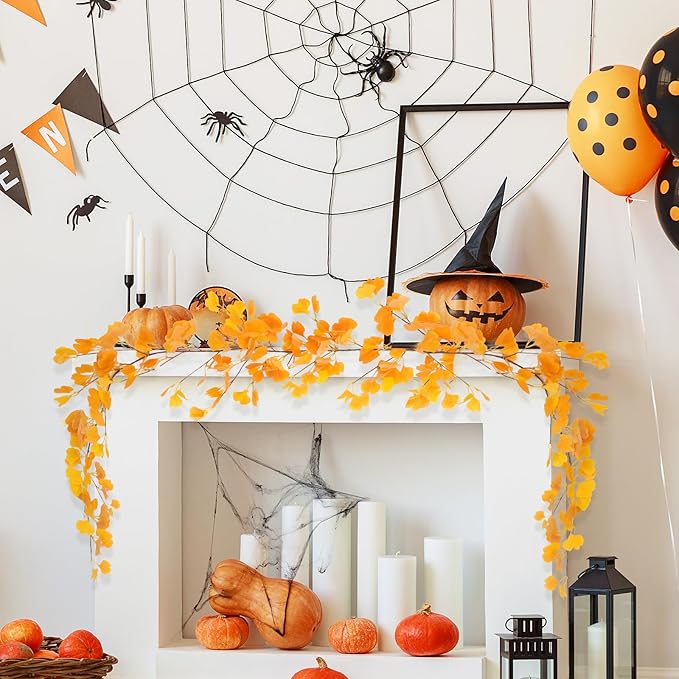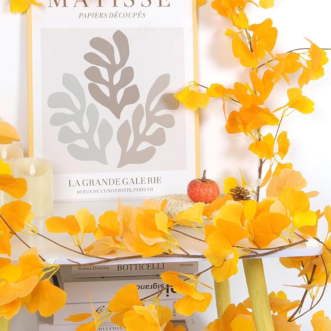 - Hanging Ginkgo Biloba Garland:Use artificial hanging fall vine garland for home décor - wrap them around railings, hallways or porches, hang them on a mantelpiece or place them on a windowsill or use them as Thanksgiving table decorations. The ginkgo leave rattan plant can also DIY with pumpkins, pine cones to create a wreath, perfect for adding colors to various festivals, dinners and birthday parties.Perfect festival decorations for indoor or outdoor