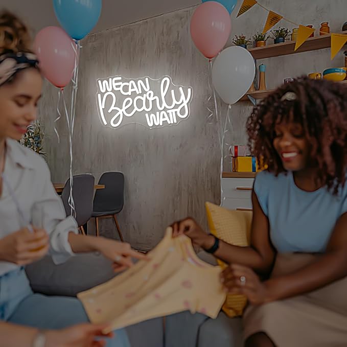 We Can Bearly Wait Neon Sign Dimmable Baby Shower Led Neon Light for Wall Decor, We Can Barely Wait Decorations Backdrop for Boys Girls Birthday Party