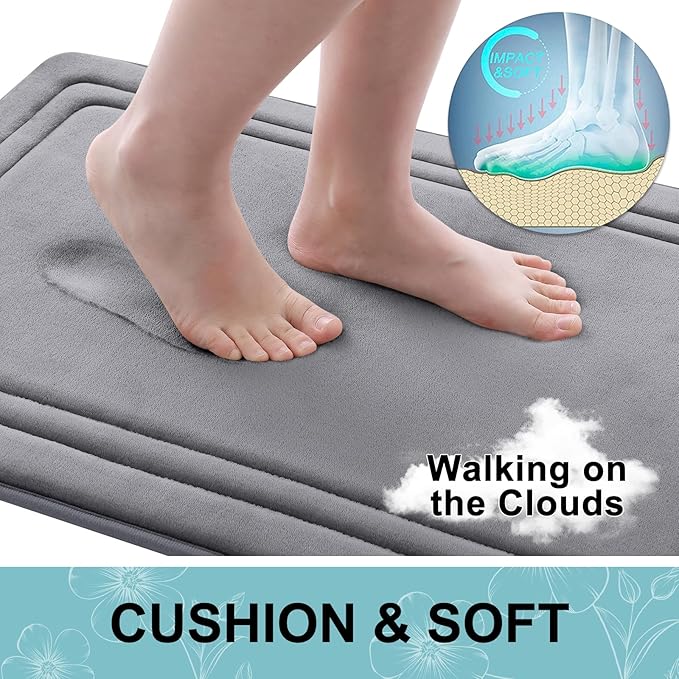 - [CLOUD-LIKE COMFORT] Imagine stepping onto a Grandaily memory foam bath mat and feeling the heavenly softness of microfiber flannel velvet cradling your feet. The thick memory foam provides gentle support, making it feel like you're standing on clouds.