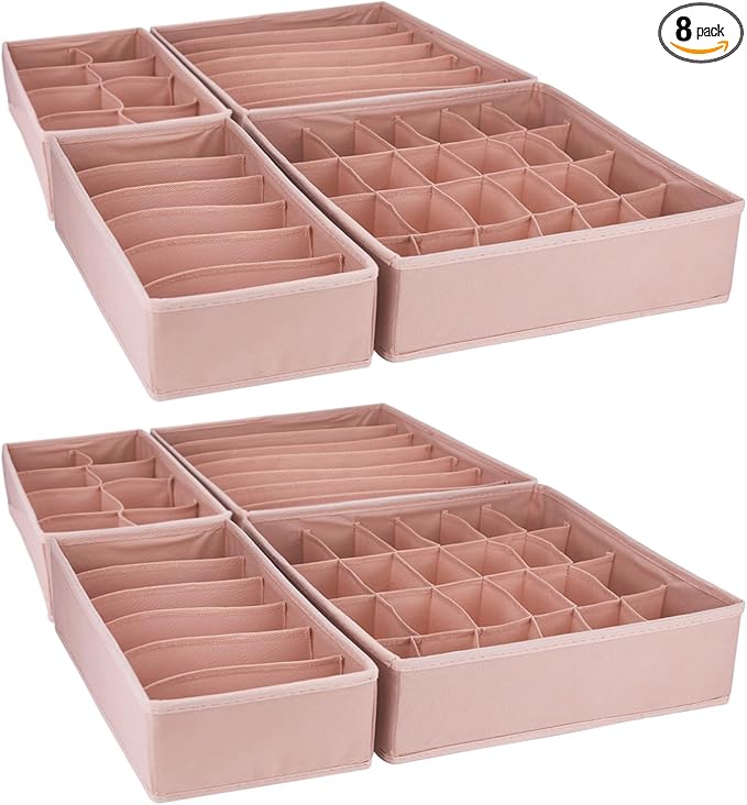 - Color : dusky pink Drawer Organizer for Clothes (8 Pack)