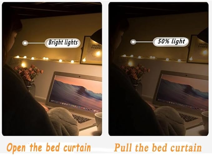- 🌛Easy to install: The ropes need to be fixed on the frame of the bunk bed, and the plastic rings hung on the rope and link the edge of the curtain. Ideal for single bed, loft bed, dorm room bed, students dormitory bunk bed, baby bed, cute bed canopy etc.
