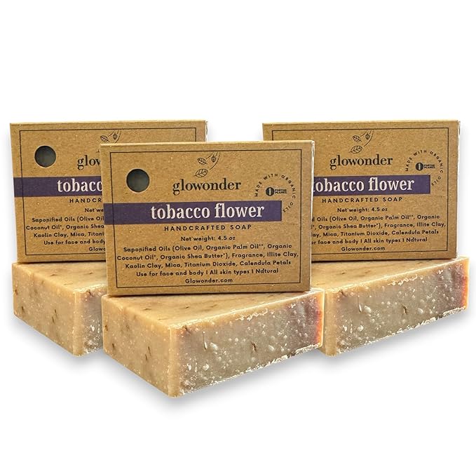 3 Pack Tobacco Flower Handmade Organic Bar Soap for Face and Body - Moisturizing, All-Natural, Cruelty-Free - Botanical Ingredients - Shower, Bath, Hand Soaps, Gifts - 13.5 oz