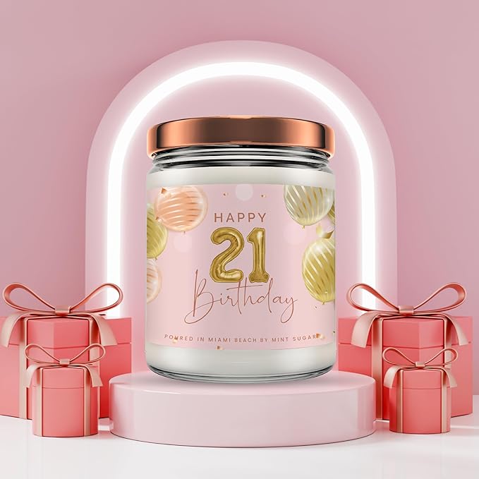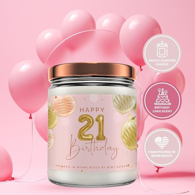 21st Birthday Candles - Happy 21st Birthday Gifts for Her - 21st Birthday Ideas - Made in USA 9 oz Scented Candle by Mint Sugar Candke Co - 21st Birthday Gift