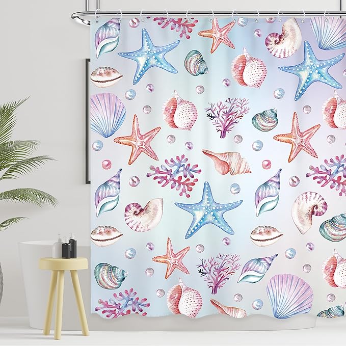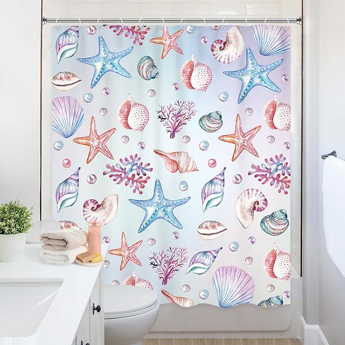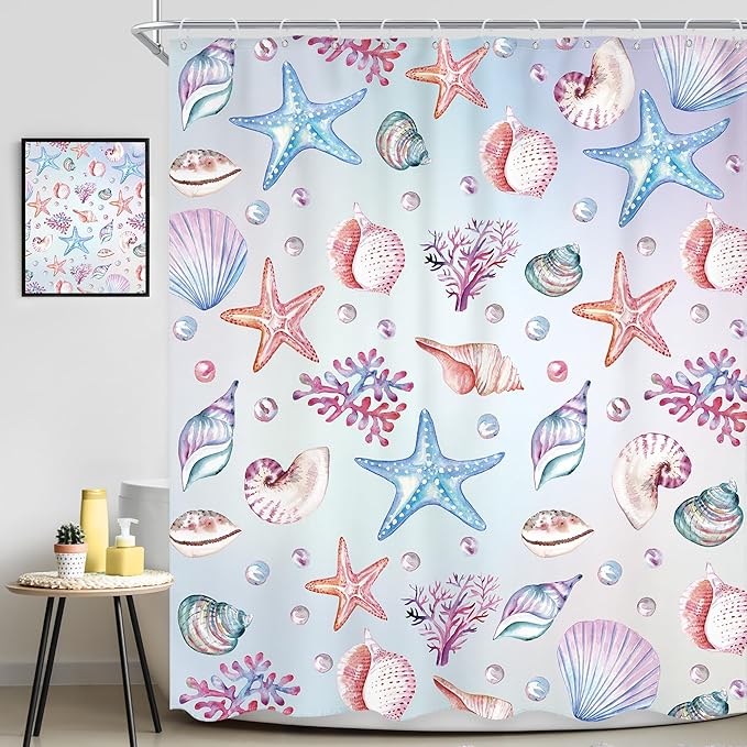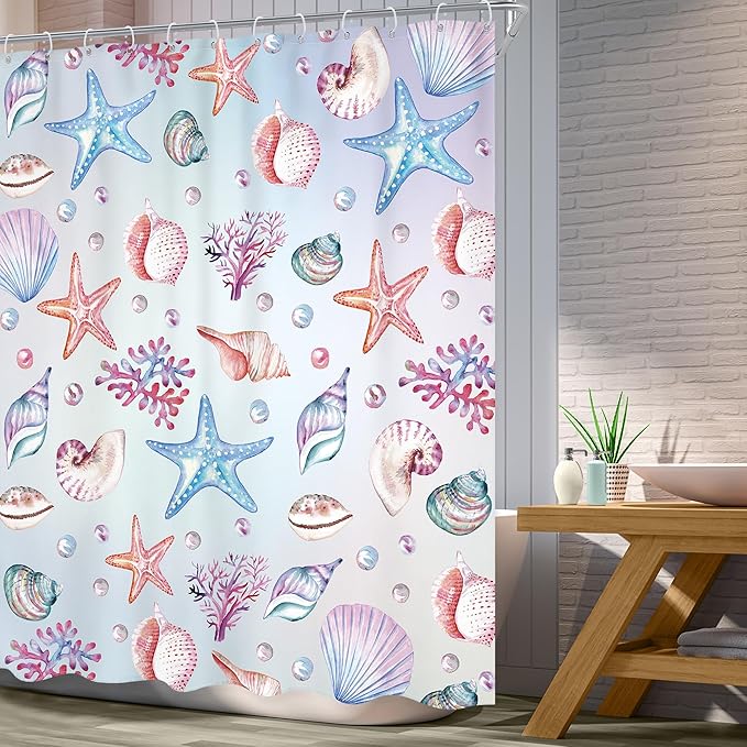 - ?¶Unique Design: Designed with starfish and seashell pattern printing technology, vibrant and vivid, give your bathroom a new feel.