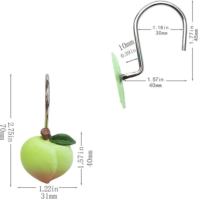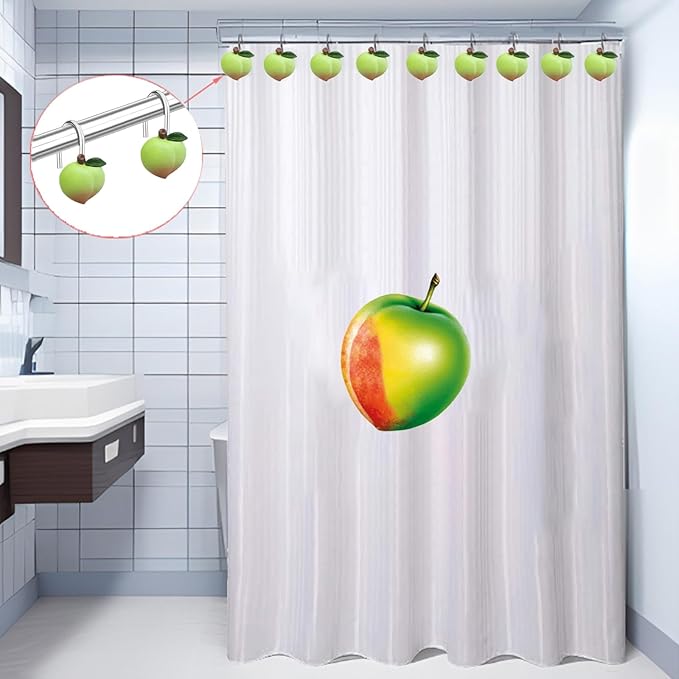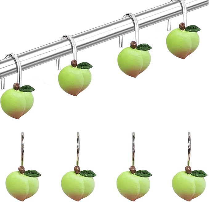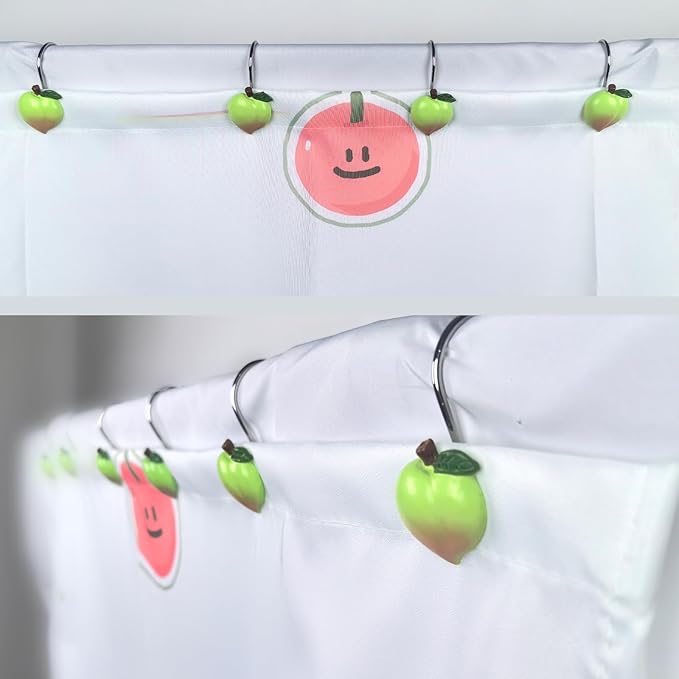 Shower Curtain Hooks, Kiwi Resin Hooks, Bathroom Shower Rod Decoration Set, 12 Pieces