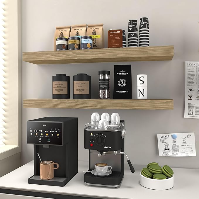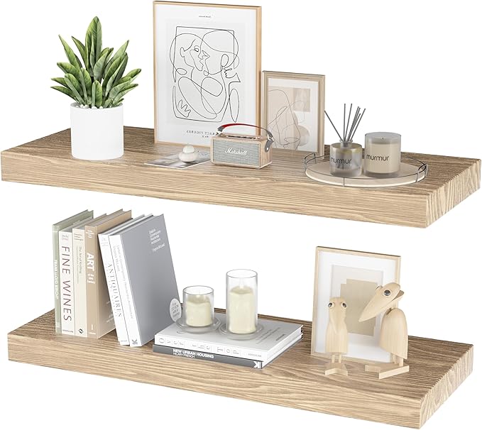 Floating Shelves for Wall - 24 x 9 Inch Natural Wood Shelves for Bathroom, Bedroom, Kitchen Decor, Farmhouse Decor Set of 2