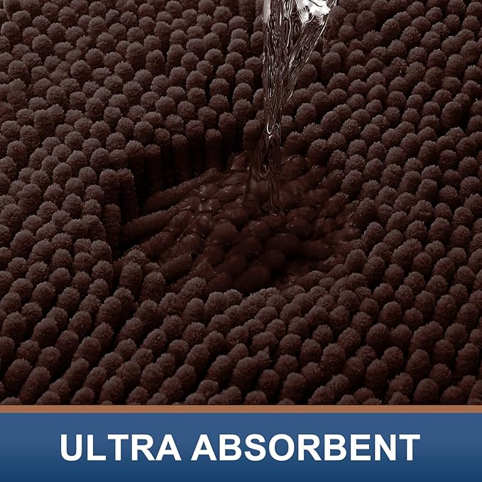 Smiry Luxury Chenille Bathroom Rugs 44x24, Extra Soft and Absorbent Shaggy Bath Mat, Machine Washable, Non-Slip Plush Carpet Runner for Tub, Shower, and Floor, Home Decor Accessories, Brown