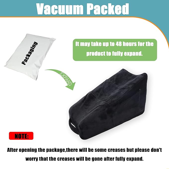 - ABOUT PACKAGING: Our arm support pillow measures 15.57 inches x 9.4 inches x 7.9 inches. In order to better protect the sponge inside during transportation, our bed armrest pillows are vacuum packed; wait about 48 hours after opening the package to allow the pillow to completely return to its original shape, or by tapping, pressing or Sunlight exposure helps the pillow recover faster. A simple, affordable and efficient solution for all your arm support needs.