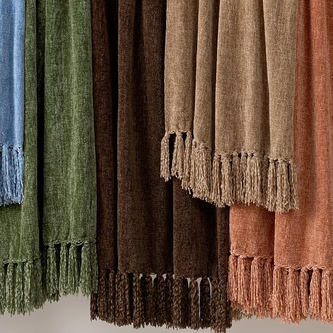 - Stylish & Decorative - This exquisite chenille throw blanket features a beautiful array of vibrant colors and stylish tassels design that instantly catch the eye and breathe life into the room. The soft and velvety fabric adds a touch of luxury, inviting you to snuggle up and stay warm. Whether draped over a sofa, bed, or chair, this chenille throw effortlessly enhances elegance and sophistication in your home decor.