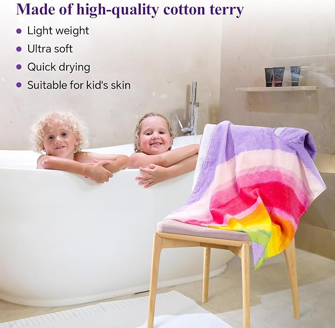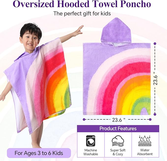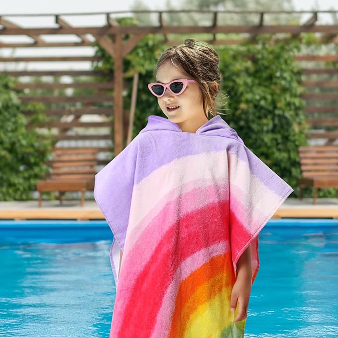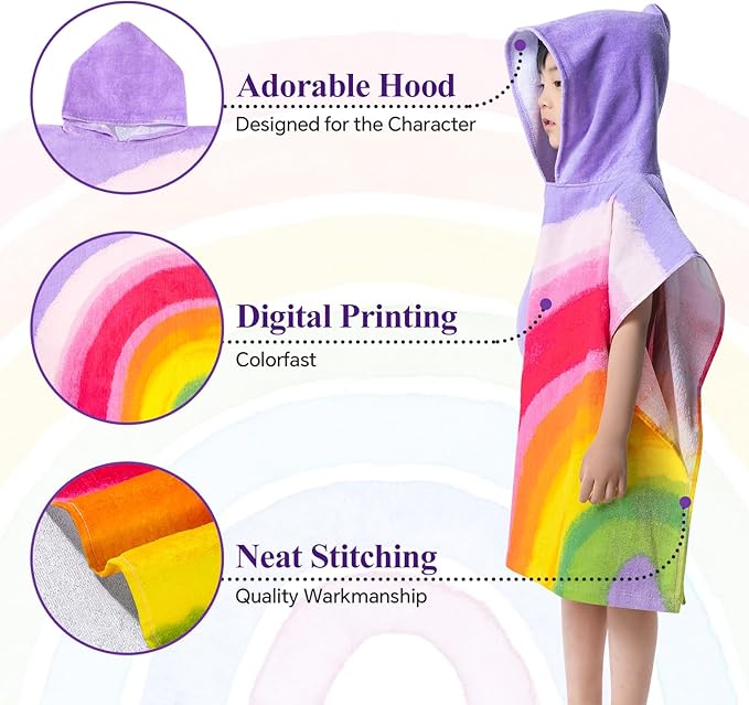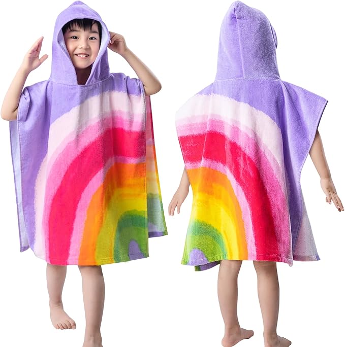 - Super Soft Rainbow Poncho - The poncho is made from 100% high-quality cotton, it is significantly more comfortable to wear compared to polyester alternatives. The natural cotton fibers are softer and more breathable, providing superior comfort and better protection for your kid?s skin.
