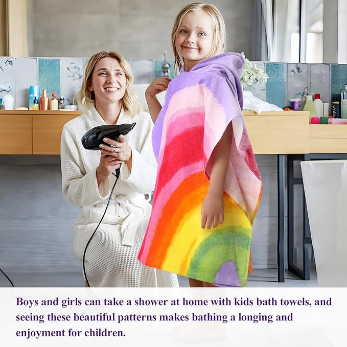 Rainbow Bath Beach Poncho Towel with Hood for Kids Boys and Girls for Shower, Pool, Swim,Beach, Super Soft 100% Cotton Towel