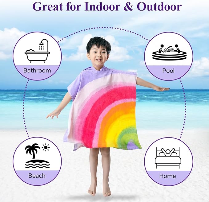 - Versatile Usage - Our poncho are incredibly versatile, suitable for a wide range of settings,beach,swimming pool, home and so on. Protect your child from getting cold after long hours of playing in the water.