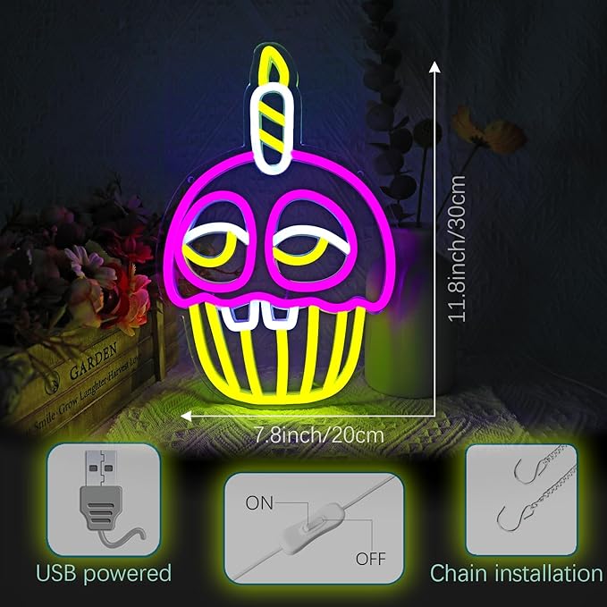 - Stylish Decor: NAIYISI Five Nights Cupcake Anime Cartoon Neon Signs for Wall Decor, perfect for bedroom, kids' room, or birthday decorations.