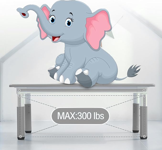 - 【Height Adjustable】: Both table and chairs are adjustable. Table height ranges from 18.9”-23.6”, and chairs from 10.6”-12.2”. Supports up to 300lbs for the table and 200lbs for each chair. Easy assembly with clear instructions.