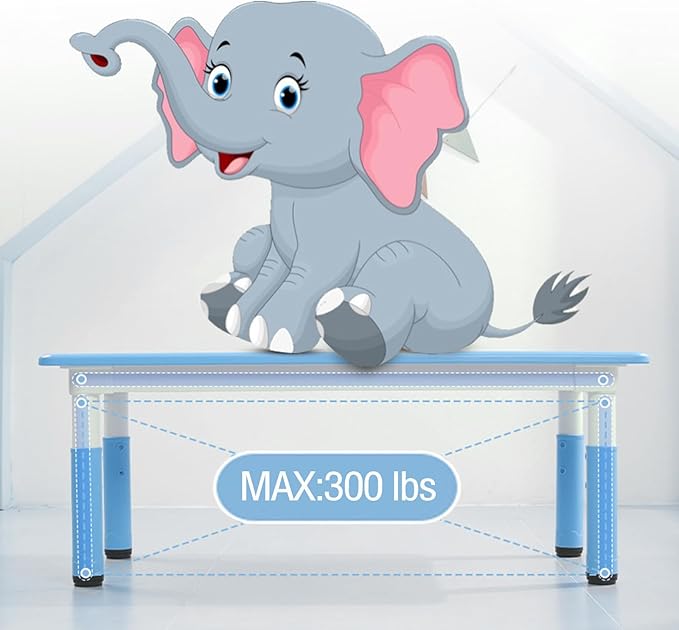 - 【Height Adjustable】: Both table and chairs are adjustable. Table height ranges from 18.9”-23.6”, and chairs from 10.6”-12.2”. Supports up to 300lbs for the table and 200lbs for each chair. Easy assembly with clear instructions.