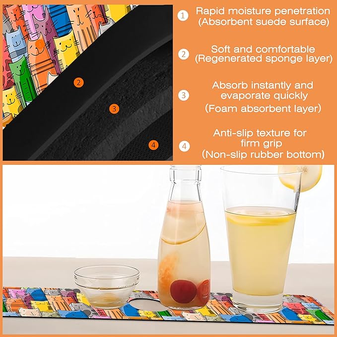 Kitchen Sink Splash Guard Faucet Mat Funny Cats Family Sink Splash Guard Behind Faucet,1 PC Soft Diatom Mud Non-Slip Mat-for Kitchen,Sink Mat,Dish Drying Mat,Bathroom Faucet Mat 23.5"X5.5"