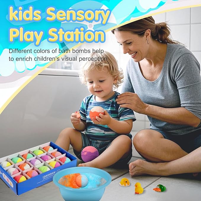 Bath Bombs for Kids - 15pcs Bath Bombs with Surprise Toys Inside, Kids Friendly & Non-Toxic Fizzy Shower Bombs for Girls Boys, Handmade Bubble Bombs Bath Gift for Birthday, Christmas