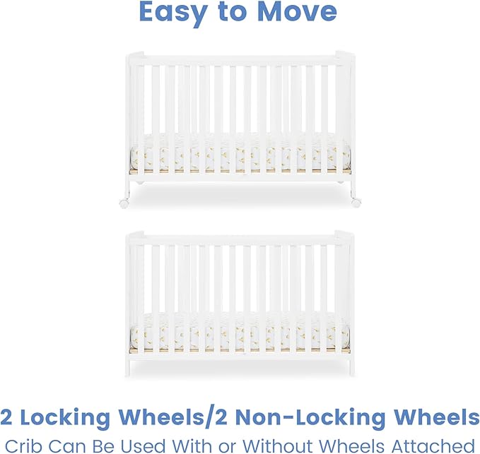 - FULL SIZE PORTABLE FOLDING CRIB: This full size portable crib features a foldable design for easy storage/transport | Crib includes 2 locking wheels and 2 non-locking wheels | Use with or without wheels | Use full size crib mattress (sold separately)