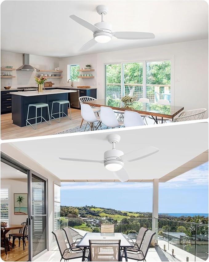 CACI Mall White 46 inch Ceiling Fans with Lights and Remote, Fush Mount low Profile Ceiling Fan, Modern,3 Blade,6 Speed DC Motor,Quiet,Small Ceiling Fan for Bedroom Indoor/Outdoor Use