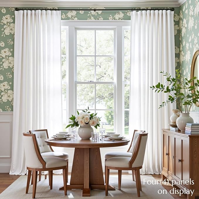 - Linen Blend Curtains: JINCHAN white linen blend curtains W50" x L102" add a soft texture and classic elegance to your home. Each set includes two curtains,with a combined size of 100 inches by 102 inches. These semi sheer curtains feature a soft, luxurious drape, infusing the space with a casual warmth and refined elegance.