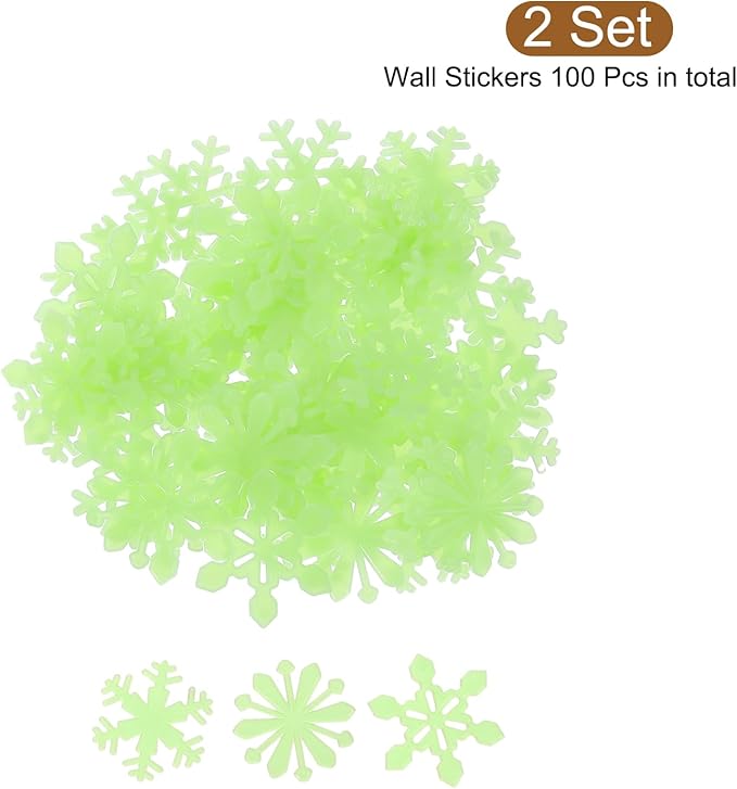 uxcell 100pcs Glow in The Dark Snowflake Fluorescent Plastic Wall Stickers Adhesive Murals Decals for Home Art Ceiling Bedroom Wall Decorations, Green