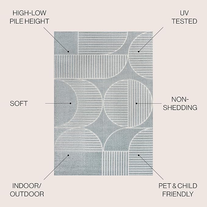 JONATHAN Y SCN104F-5 Nordby High-Low Geometric Arch Scandi Striped Light Blue/Cream 5 ft. x 8 ft. Indoor/Outdoor Area Rug for Patio, Backyard, Living Room, Bedroom, Office, Hose-Washable