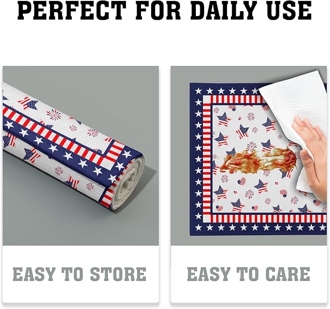 Giwawa 4th of July Placemats for Kitchen Dining, 12x18Inch Patriotic American Flag USA Stars Linen Table Place Mats Non-Slip Heat Resistance Set of 4 for Independence Day Holiday Party Decor