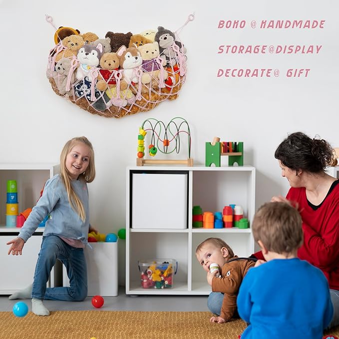 - 【Eco-Material,Handmade Gift with Love】The stuffed animal hammock is made of high quality macrame cotton cord, and was woven with love by our mom team artists. The macrame toy hammock will not loosen with time and change its shape. Our macrame stuffed animals display is environmentally friendly, safe and durable.At the same time, our macrame stuffed animal hammock add safety steel rings design to prevent stuffed animal net or hammock from falling and ensure you kids safety.