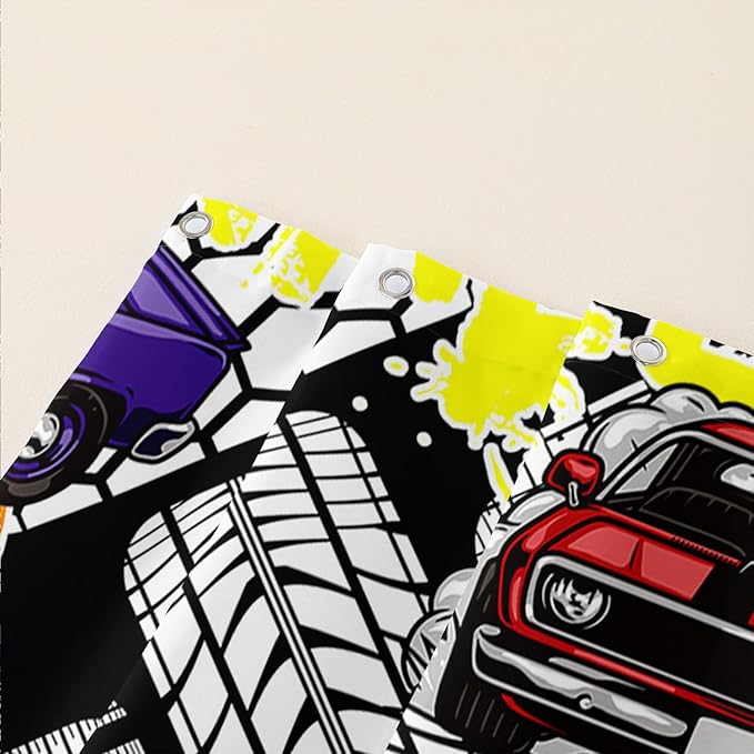 AILONEN Racing Car Shower Curtain for Bathroom Decor,Cool Racer Bath Curtain for Kids Boys Teens,Graffiti Printed Curtain Waterproof with 12 Plastic Hooks, 60" W x 72" H