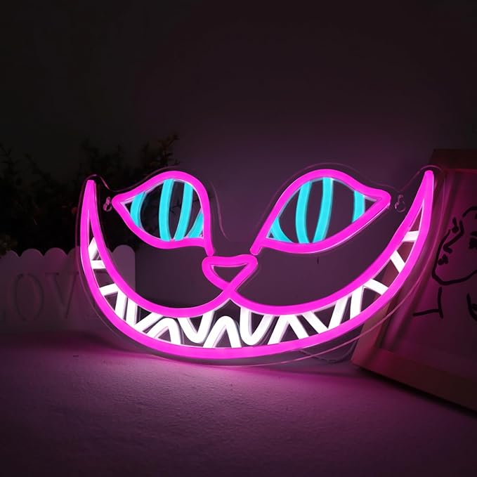 Cheshire Cat Neon Signs Alice in Wonderland Neon Light for Wall Art Decor, Smile Cat LED Lights for Dimmable LED Lights for Bedroom Man Cave Party Bar Background Decoration Birthday Gifts