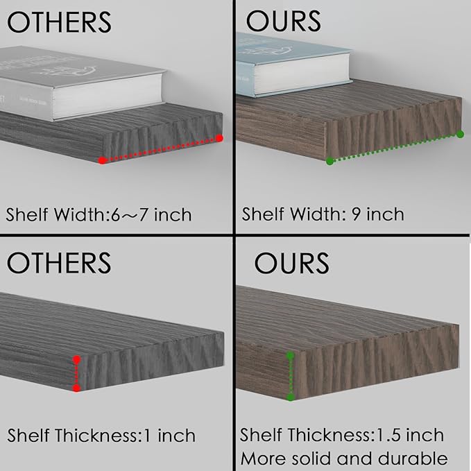 - Our product is a set of 2 wall shelves. The wood we use is natural wood, which is practical and beautiful.The wood we use is natural wood, which is more friendly to pregnant women, children and the elderly.