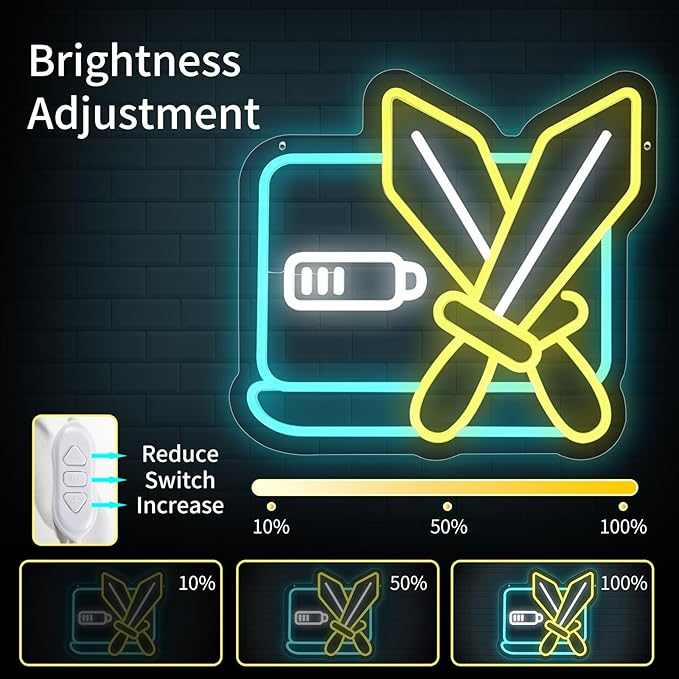 - Adjustable brightness. The neon sign has a 6-speed brightness dimmer from 10% to 100%. Choose your favorite brightness according to the usage scenario, meet the needs of various scenarios, and make life more colorful.