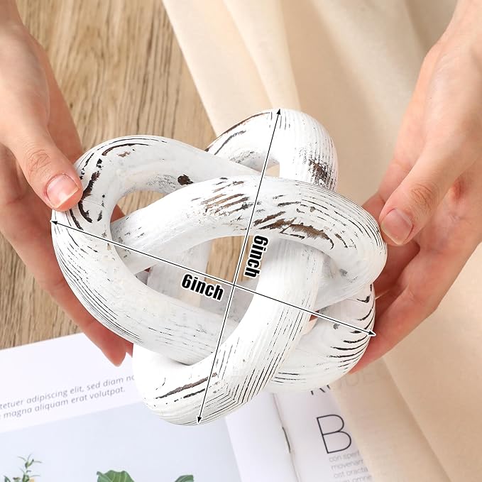 Yalikop 3 Link Wood Knot Decor - Hand Carved Coffee Table Decoration, Boho Chain Link Decor, Modern Shelf, Rustic Objects for Home Living Room Bedroom(Retro White)