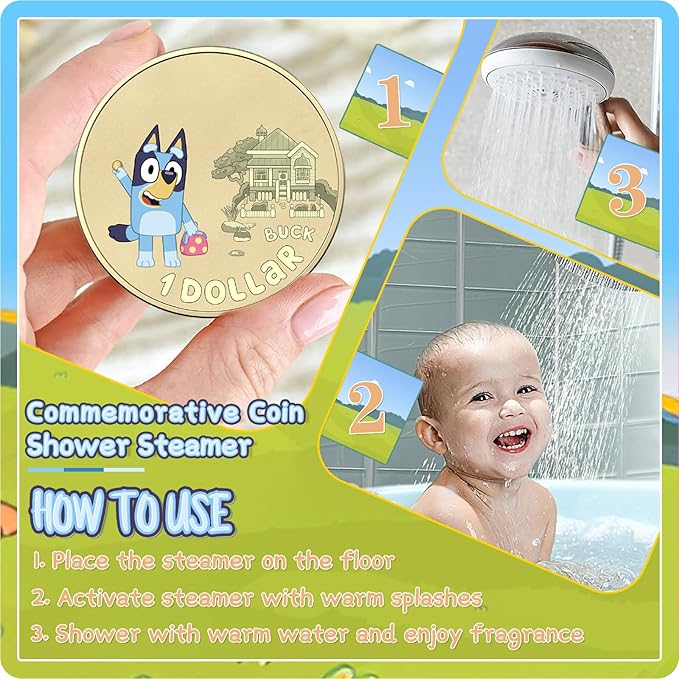 - 【Fragrant Relaxed Spa for Kids】The 3 Commemorative Coin Shower steamer allows kids to play pretend with the coin shower steamer, create their own play the heelers time, and then bathe with the fragrant coin shower steamer. Especially perfect for hot summer and cold winter days, the shower tablets emit a pleasant scent when it encounters water that makes children after play fall in love with bath time. TIPS: place one of shower tablets fizzies in the corner of your shower and do not submerge it. And here’s a heeler puppy poster, enjoy a little sing-a-long while you wash those hands.