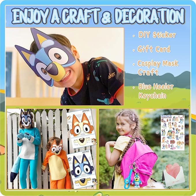 - Gifts Se【Unleash the Fun with The Heelers】 Kids can choose their favorite heelers puppy and create the mask, then wear it during a Heeler Family themed party for a fun way to pretend play. Heelers puppy cartoon keychain, but also a very practical hanging bag, lanyard, ect. The Heelers drawstring backpack can help kids store all of toys. Decorate and customize blank gift cards with the fun sticker sheet that's include, it can be tailored to convey your unique sentiments.t: Bath Bombs Shower Steamers,Birthday Gifts