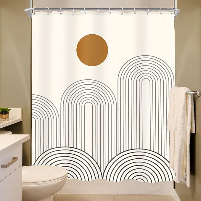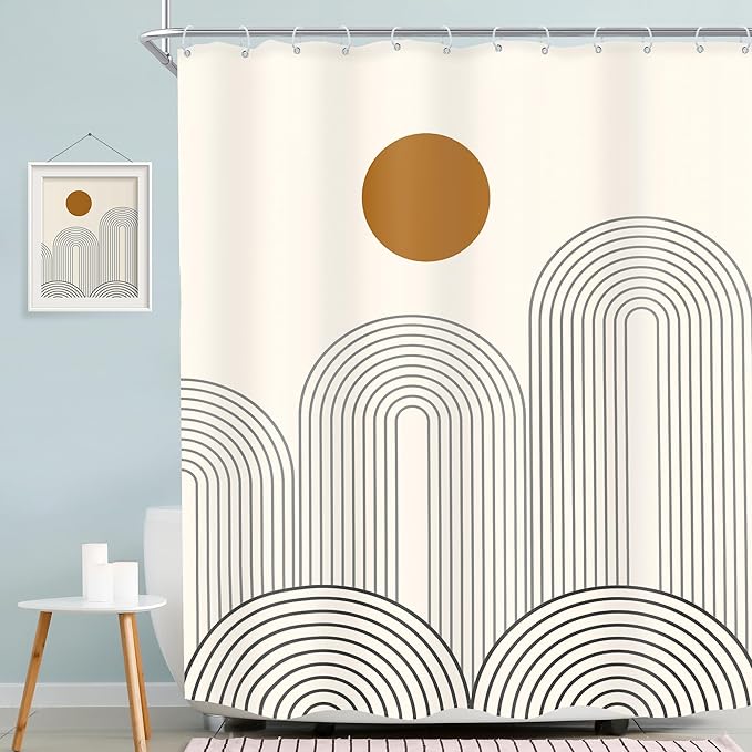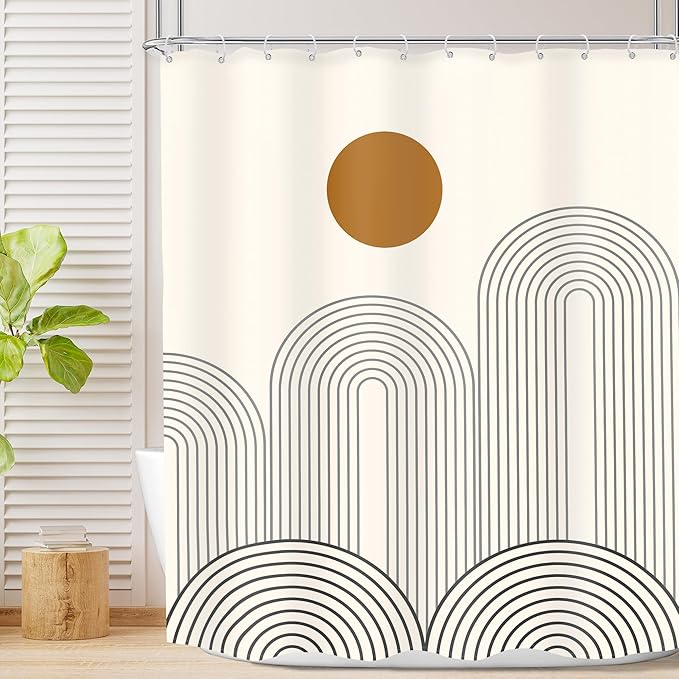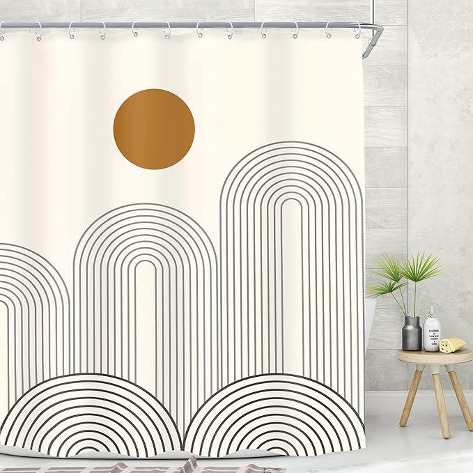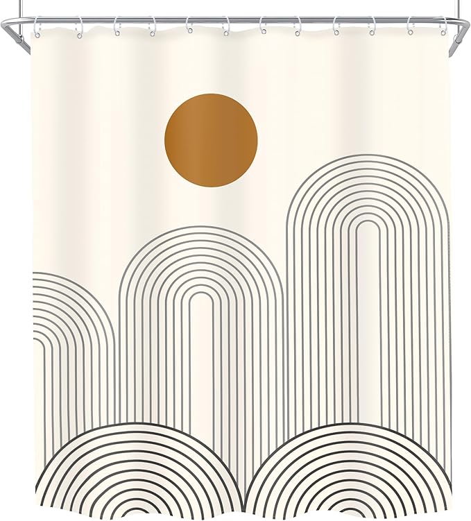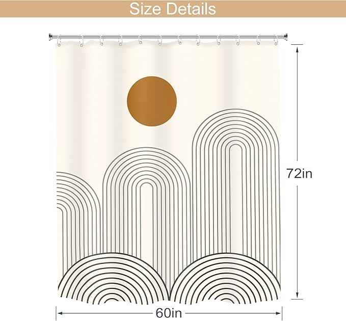 MESHELLY Boho Mid Century Shower Curtain 60Wx72H Abstract Modern Sun Minimalist Arch Simple Geometric Bathroom Curtain Beige Brown Bath Curtain Cloth Fabric Bathroom Accessories Decor with 12 Hooks