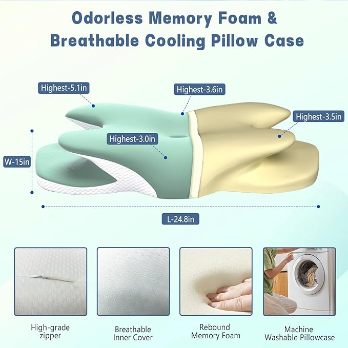 - 【Personalized Sleep Solution - 2 Heights, Multiple Sleeping Positions】The cervical pillow has two heights to choose from, simply rotate the pillow 180 degrees to enjoy a higher or lower sleeping angle. The butterfly design provides an armrest for your arms and is suitable for a variety of sleeping positions, such as sleeping on your stomach, back, or side.