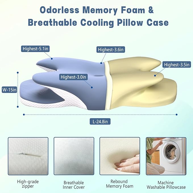 - 【Personalized Sleep Solution - 2 Heights, Multiple Sleeping Positions】The cervical pillow has two heights to choose from, simply rotate the pillow 180 degrees to enjoy a higher or lower sleeping angle. The butterfly design provides an armrest for your arms and is suitable for a variety of sleeping positions, such as sleeping on your stomach, back, or side.