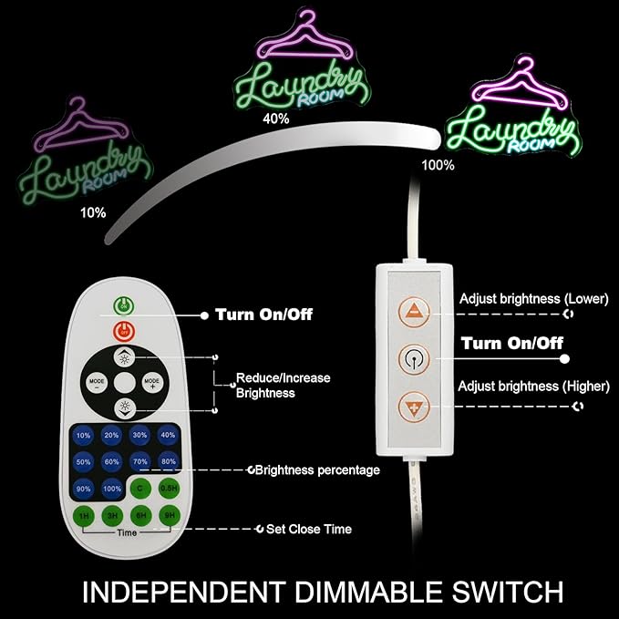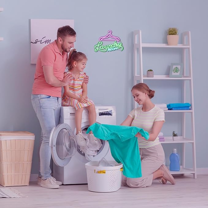 - Neon sign design: "Laundry Room" neon light, adding a touch of glow to any room! Whether you want to create a cozy atmosphere in your bedroom or living room, show your friends and family that your home is their happy place, or give a special gift to your loved ones