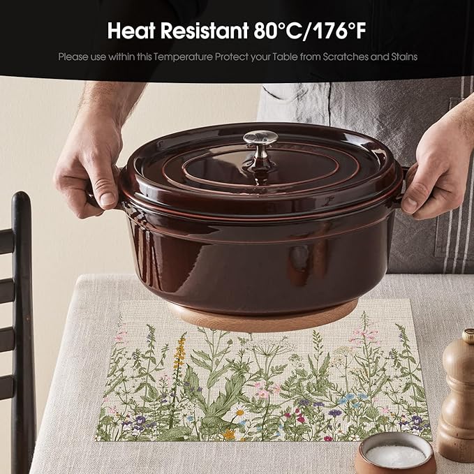 - Protect Your Table:The wipeable placemat Heat-resistant up to 176°F (80°C), perfect to protect your dining table from food stains and burns